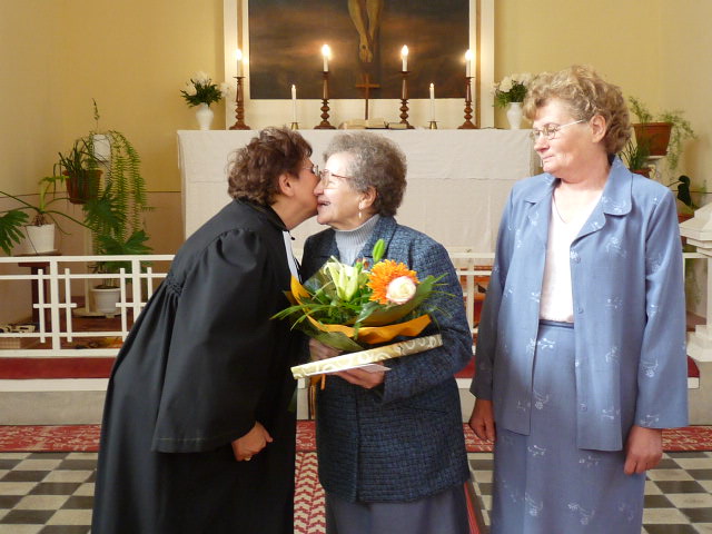 Szkaliczkiné Marika köszöntése a gyülekezetben...